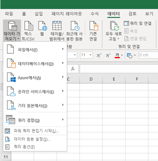 파워 쿼리는 Excel 에서 데이터를 가져오고 정리하는데 사용되는 도구 입니다. 보통 인코딩이 UTF-8 로 되어있는 csv 파일을 읽어올 때 사용했던 기능들입니다.