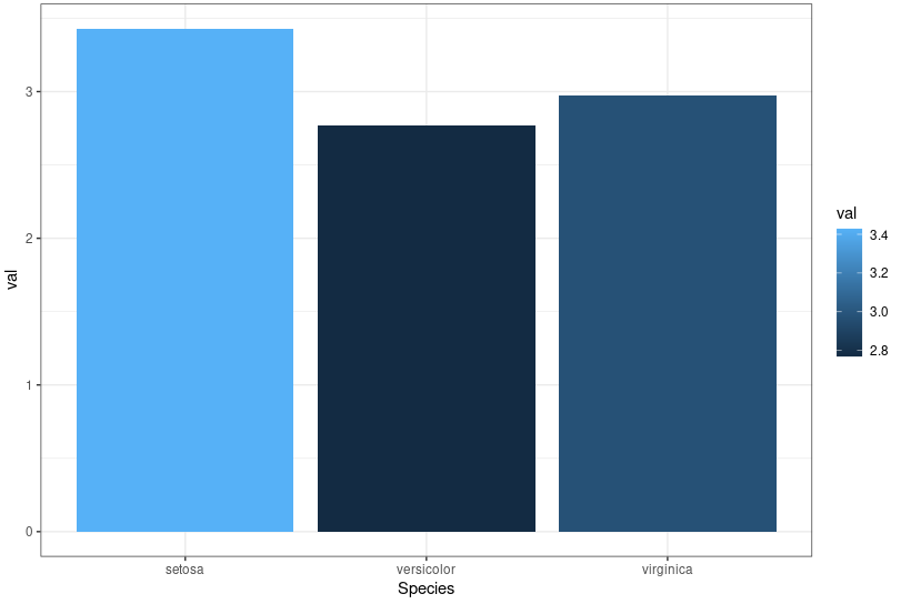 aes(x = Species, y = val, fill = val)