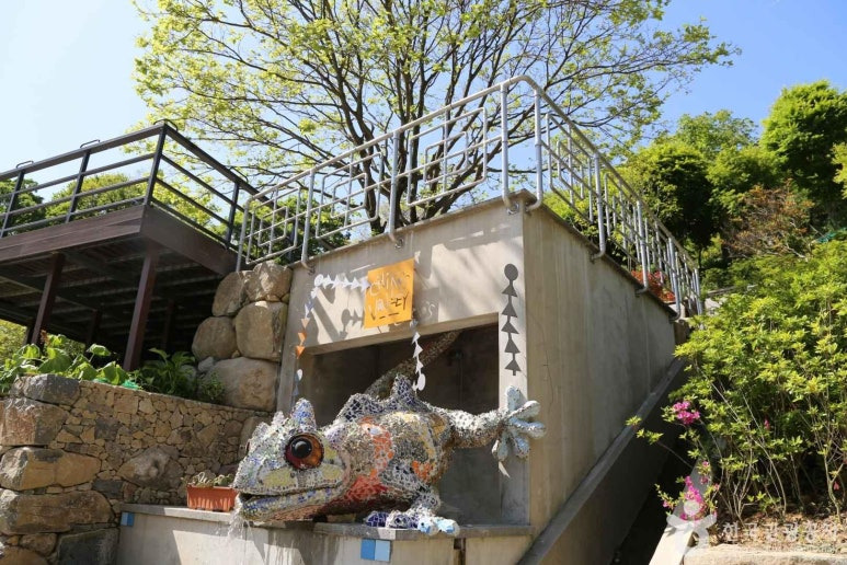 정원의 하이라이트라고 할 수 있는 수평계곡은 산골짜기에 흐르는 시냇물의 유량을 조절하는 무등산바우정원의 정점입니다. 이 계곡 주변으로는 '치코스밸리(Chico's Valley)'라 불리는 작은 계곡이 있는데, 이는 바르셀로나의 구엘 공원에 있는 도마뱀 조각상을 연상시키는 독특한 조형물로 꾸며져 있습니다.