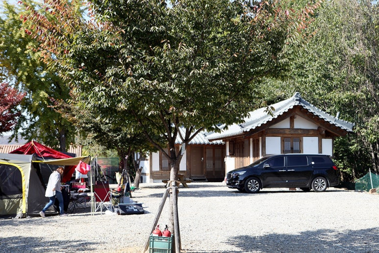 화장실, 샤워장, 개수대 등 편의시설은 관리동에 마련되어 있어 이용하기 편리해요. 가장 안쪽에는 한옥 펜션도 있어 캠핑이 부담스러운 분들도 편하게 이용할 수 있답니다.