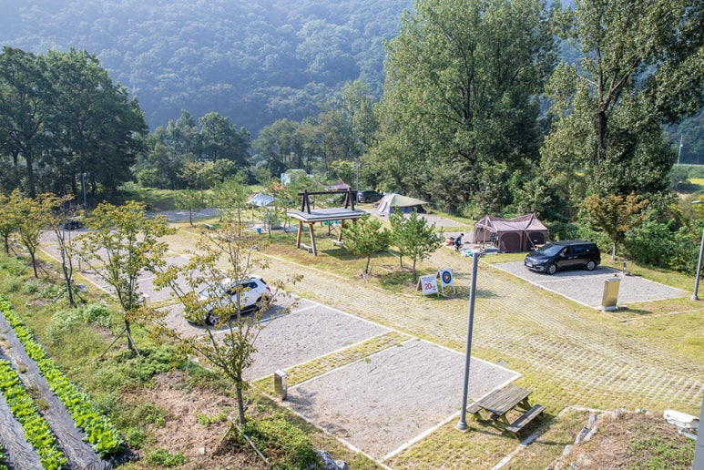 이곳의 가장 큰 매력은 사면이 산으로 둘러싸인 자연친화적인 환경이에요. 울창한 숲속에서 평화로운 분위기를 만끽할 수 있답니다. 게다가 근처에 보청천이 있어 캠핑과 함께 낚시도 즐길 수 있어요.