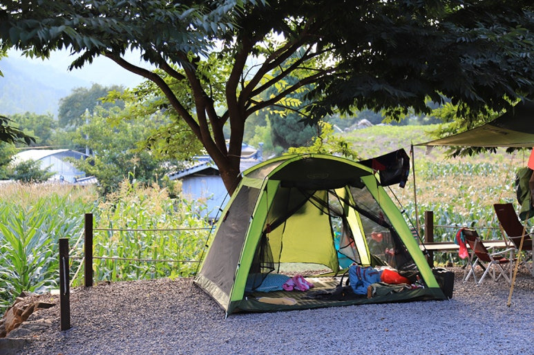 - 바닥이 파쇄석이에요. 텐트 밑에 깔 매트를 꼭 준비하세요!